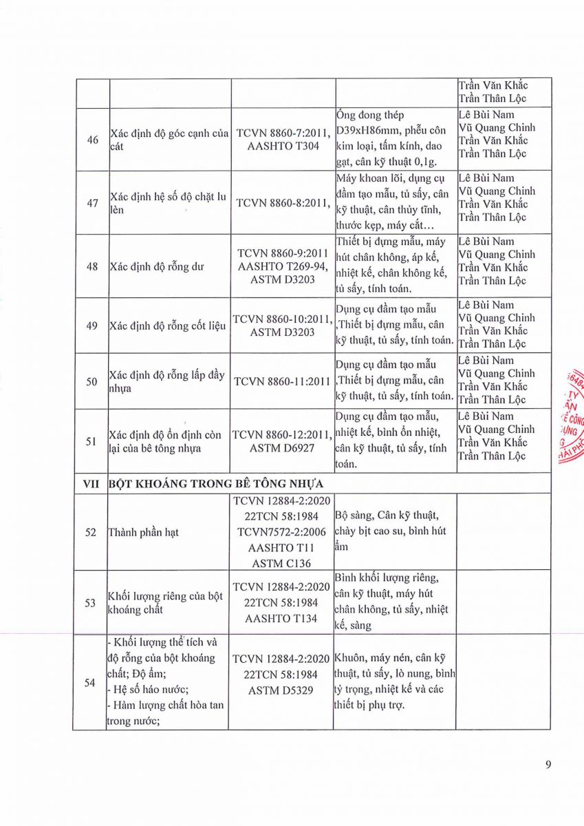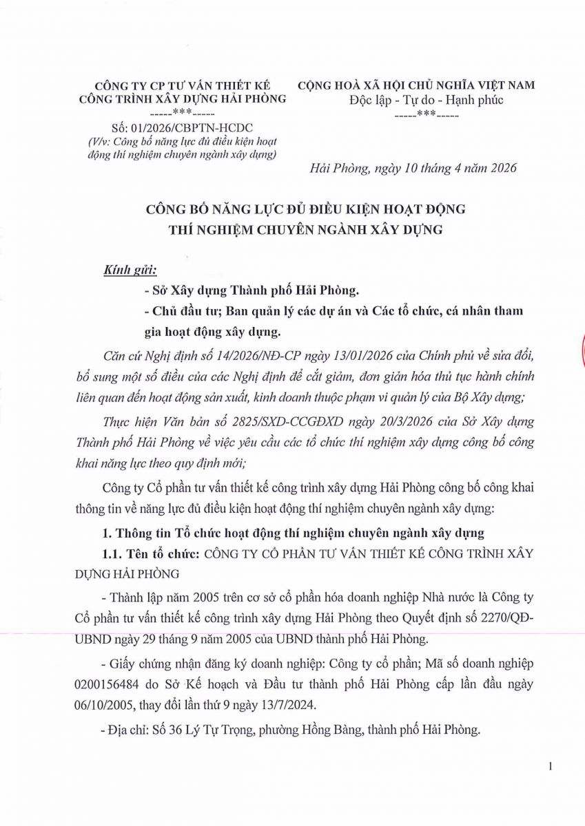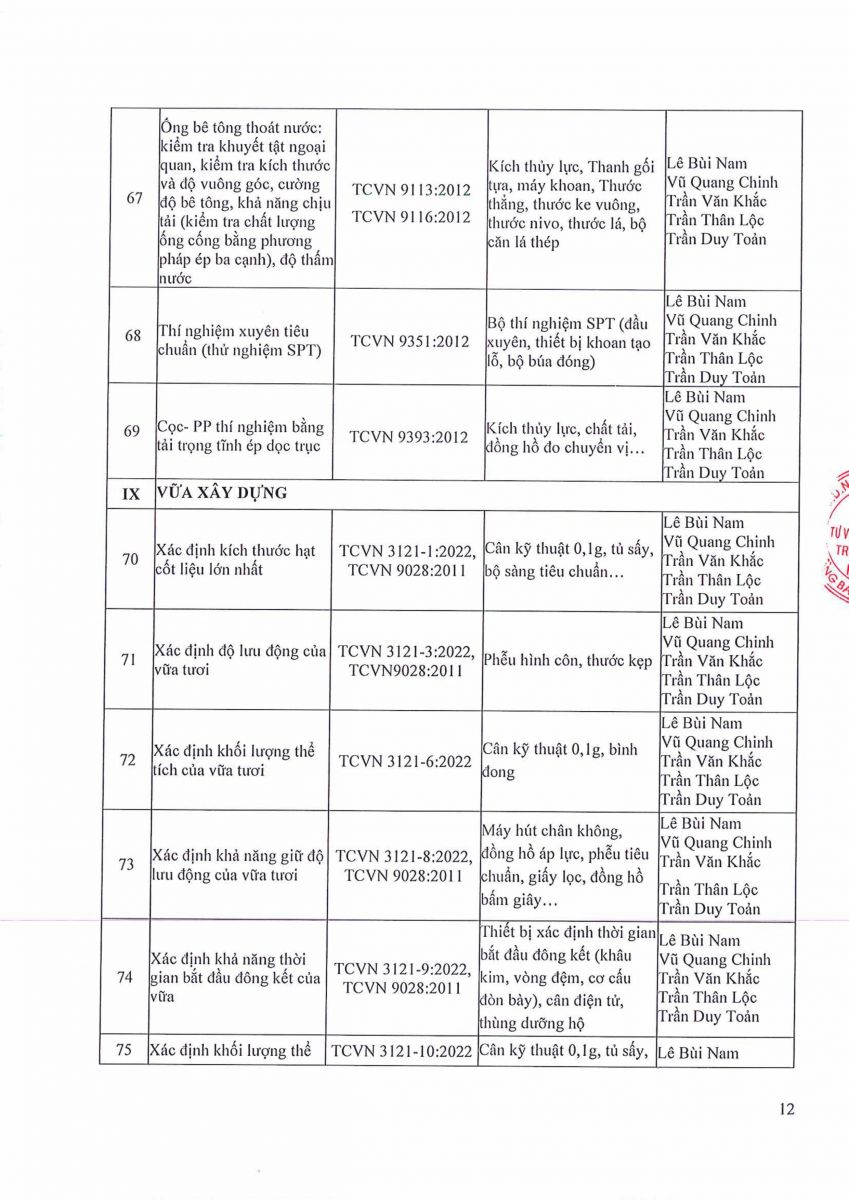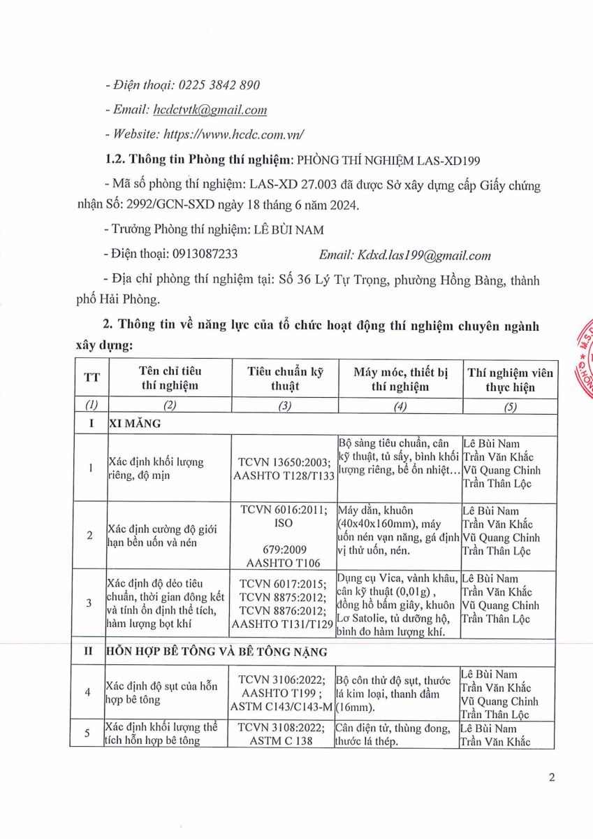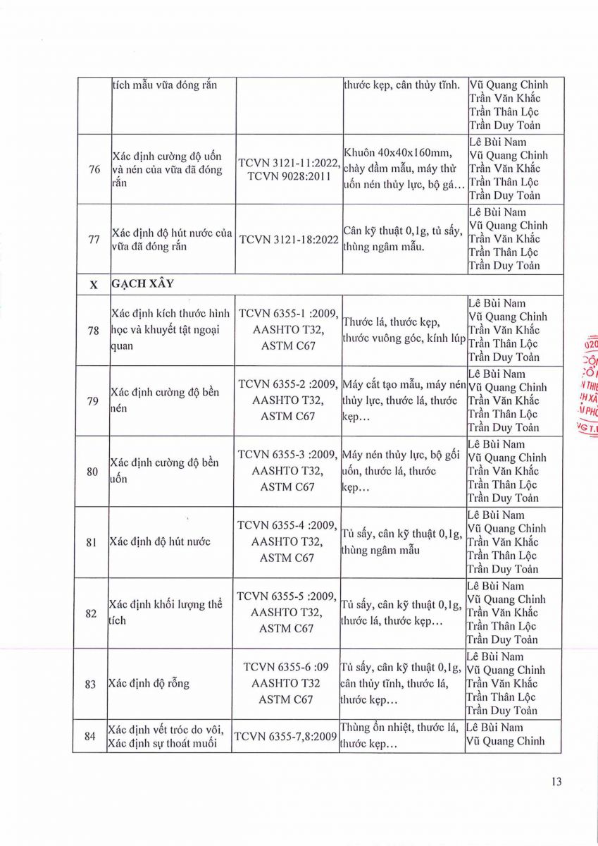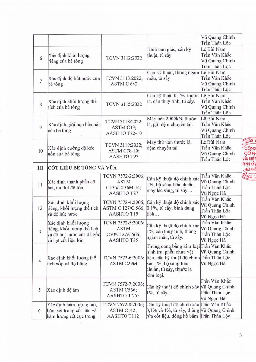 9. GIẤY CÔNG BỐ NĂNG LỰC ĐỦ ĐIỀU KIỆN HOẠT ĐỘNG THÍ NGHIỆM CHUYÊN NGÀNH XÂY DỰNG