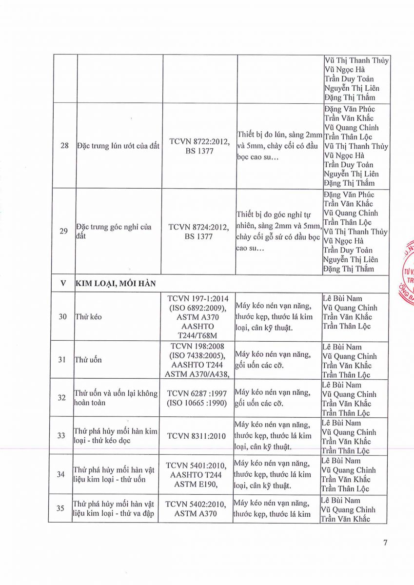 7. GIẤY CHỨNG NHẬN ĐỦ ĐIỀU KIỆN HOẠT ĐỘNG THÍ NGHIỆM CHUYÊN NGÀNH XÂY DỰNG (LAS-XD 199)