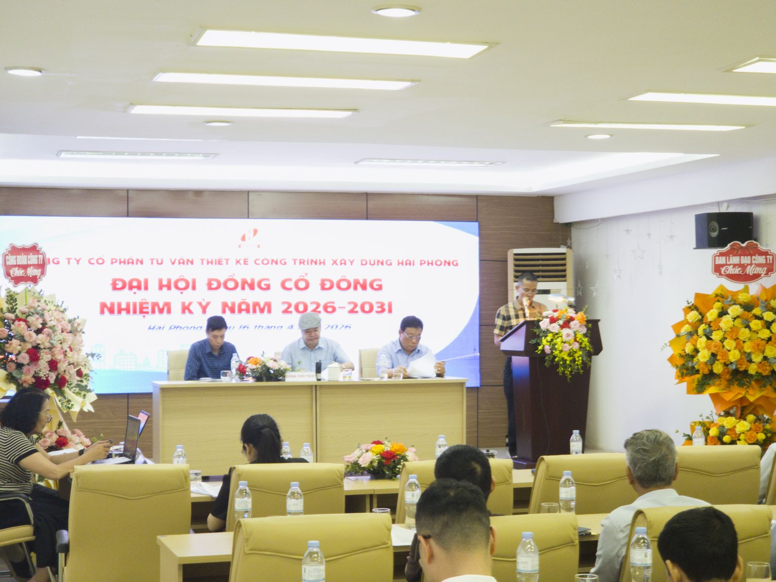 Sáng ngày 16 tháng 04 năm 2026 tại trụ sở Công ty Cổ phần tư vấn thiết kế công trình xây dựng hải Phòng số 36 Lý Tự Trọng, phường Hồng Bàng, tp. Hải Phòng , công ty đã tổ chức Đại hội đồng cổ đông nhiệm kỳ 2026 - 2031.