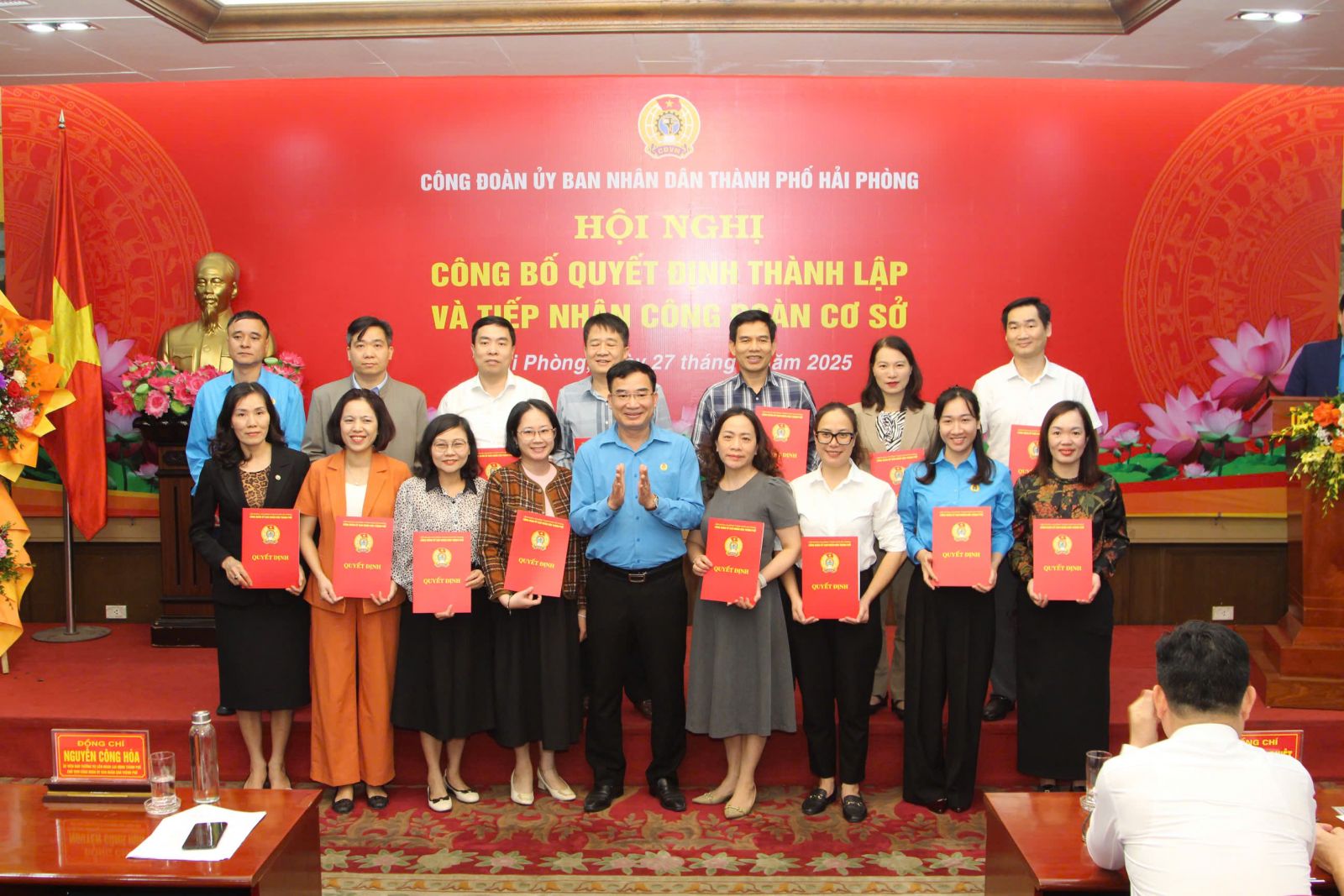 Trong đó, chuyển giao 25 Công đoàn cơ sở với 1.278 đoàn viên công đoàn về trực thuộc Công đoàn Các cơ quan Đảng thành phố; chuyển giao 56 Công đoàn cơ sở với 13.562 đoàn viên về trực thuộc Công đoàn Công đoàn UBND thành phố; chuyển giao 326 Công đoàn cơ sở với 52.338 đoàn viên về trực thuộc Liên đoàn động quận, huyện, thành phố Thuỷ Nguyên.