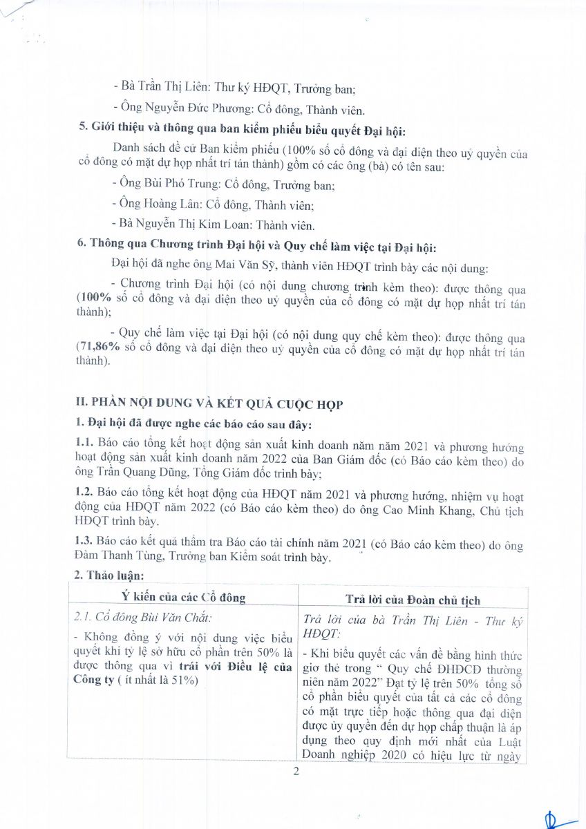 BIÊN BẢN HỌP ĐẠI HỘI ĐỒNG CỔ ĐÔNG THƯỜNG NIÊN NĂM 2022