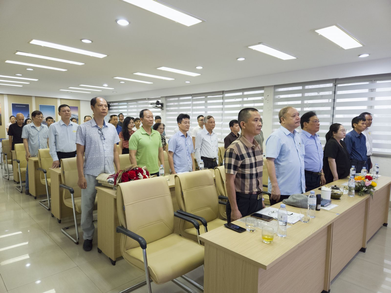 Đoàn Chủ tích bao gồm Ông Cao Minh Khang - Chủ tịch HĐQT, chủ tọa đại hội, Ông Bùi Văn Công - phó chủ tịch HĐQT, Ông Trần Quang Dũng - thành viên HĐQT, tổng giám đốc lên vị trí làm việc.