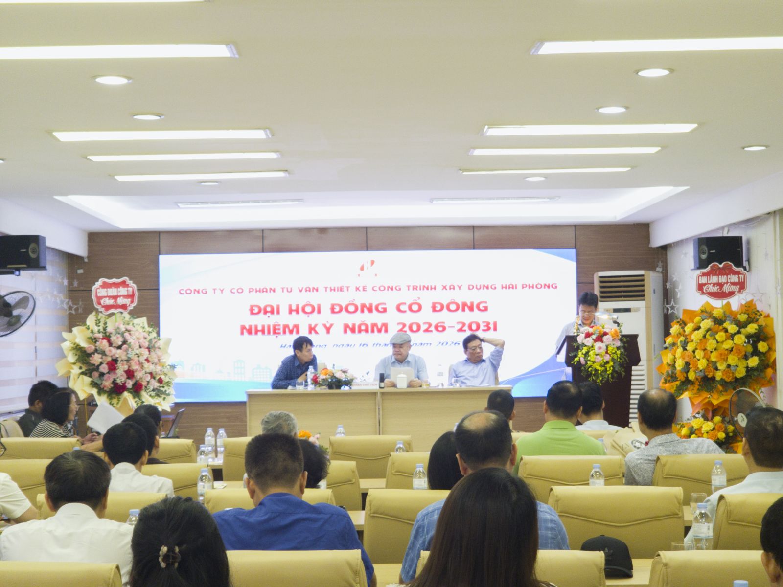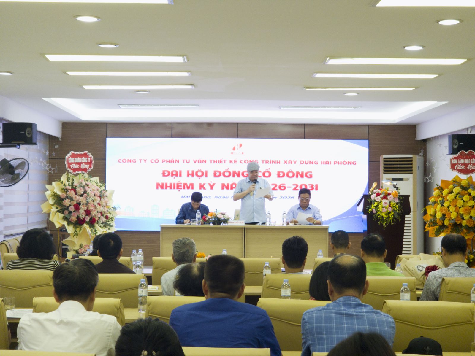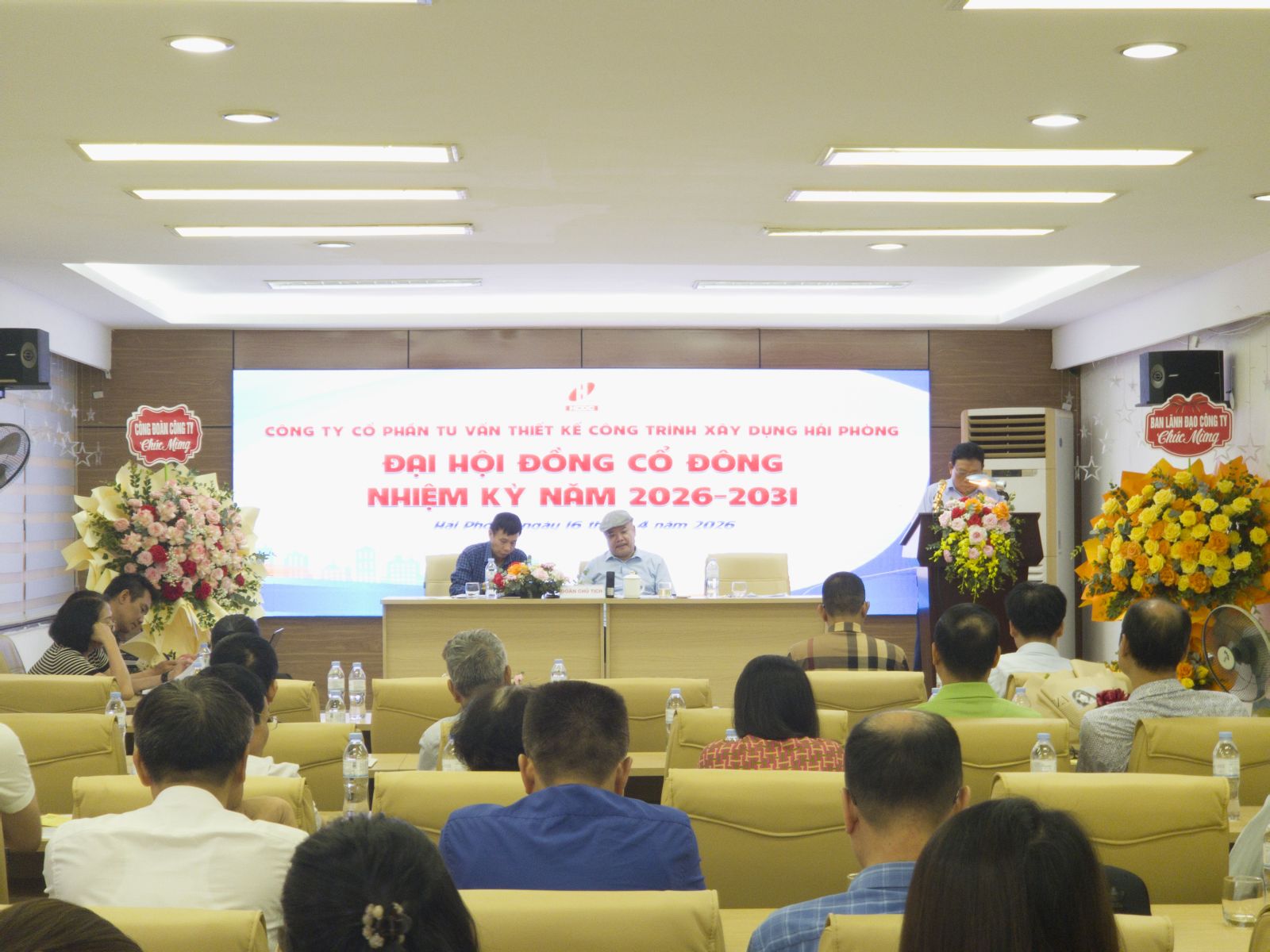 Sáng ngày 16 tháng 04 năm 2026 tại trụ sở Công ty Cổ phần tư vấn thiết kế công trình xây dựng hải Phòng số 36 Lý Tự Trọng, phường Hồng Bàng, tp. Hải Phòng , công ty đã tổ chức Đại hội đồng cổ đông nhiệm kỳ 2026 - 2031.