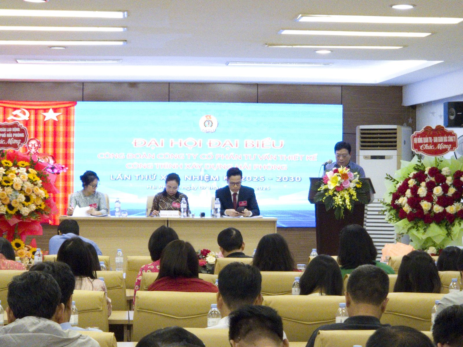 Ngày 07 tháng 11 năm 2025, Đại hội đại biểu Công đoàn Công ty CP tư vấn thiết kế công trình xây dựng Hải Phòng đã được tổ chức tại Hội trường công ty, số 36 Lý Tự Trọng, phường Hồng Bàng, TP. Hải Phòng.