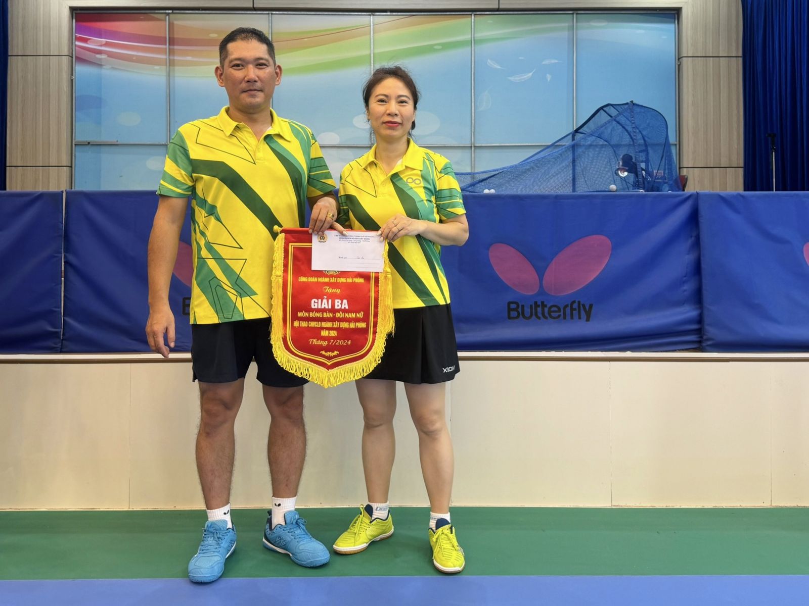 Sau những giờ thi đấu hết mình, Đoàn thể thao HCDC đã xuất sắc đạt Giải Ba đôi Nam - Nữ môn Bóng bàn.