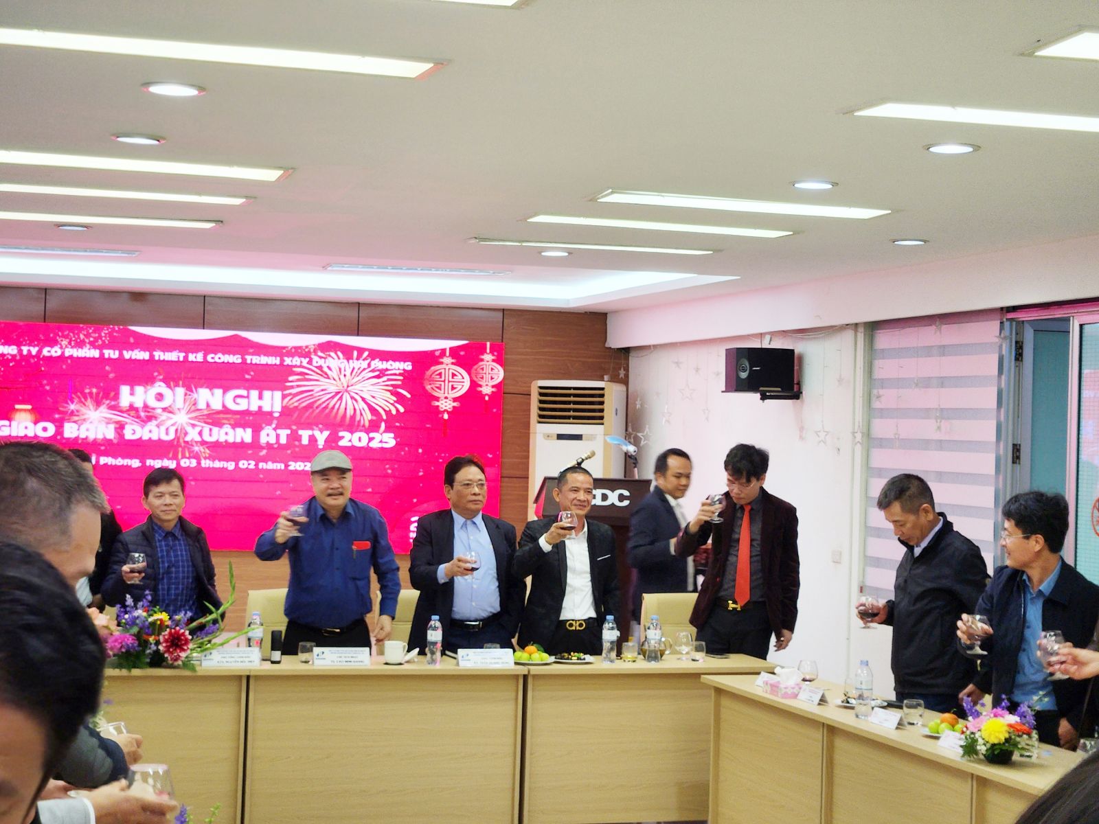 Sau bài phát biểu của Chủ tịch và Tổng giám đốc toàn thể Ban lãnh đạo cùng các thành viên dự hội nghị nâng ly chúc mừng năm mới bình an, sức khỏe tới tất cả mọi người.