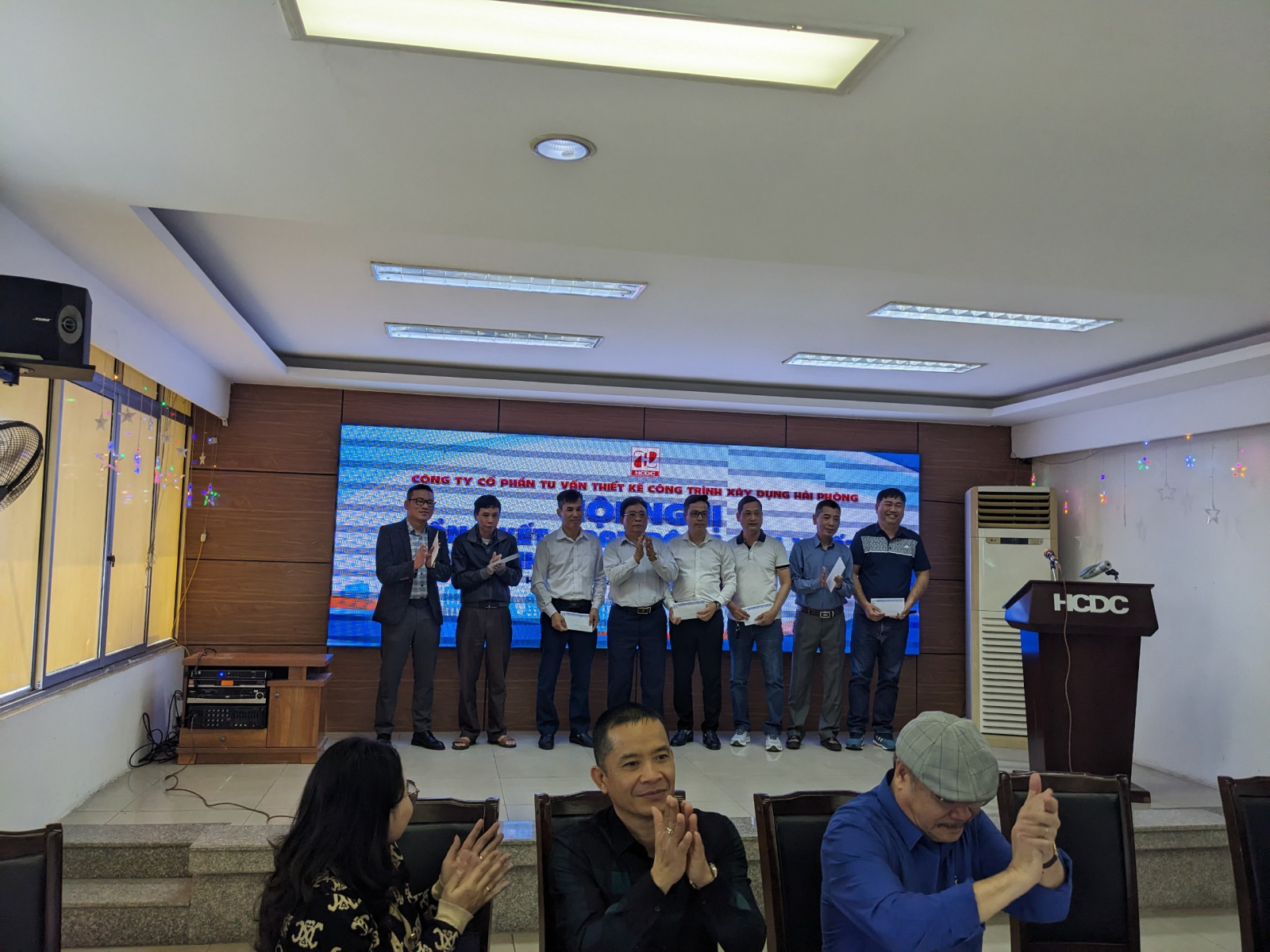 Đúng 9h30 tại Hội trường Công ty, số 36 Lý Tự Trọng, toàn thể Ban lãnh đạo công ty, lãnh đạo các xí nghiệp thành viên đã có mặt tham dự buổi lễ tổng kết hàng năm.